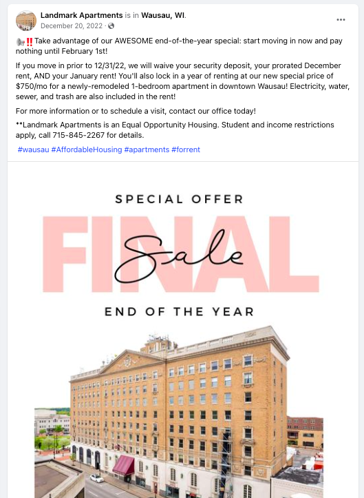 Landmark Apartments Facebook Ads
